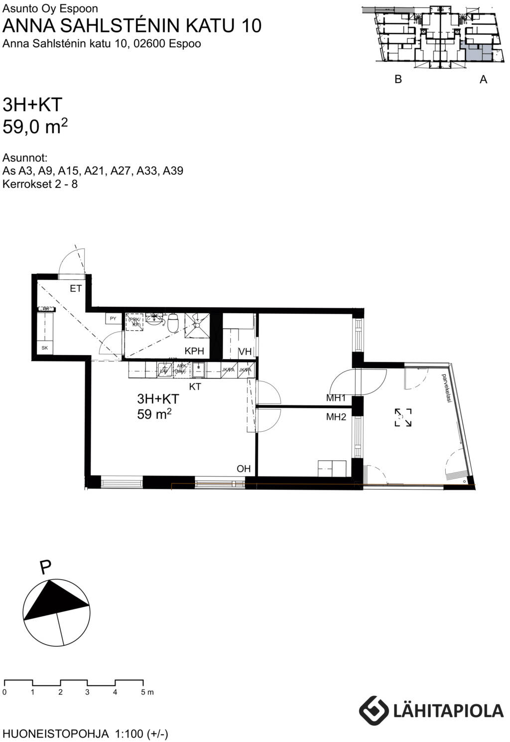 | 3 H + KT | 59 m² | 1150 €/kk |