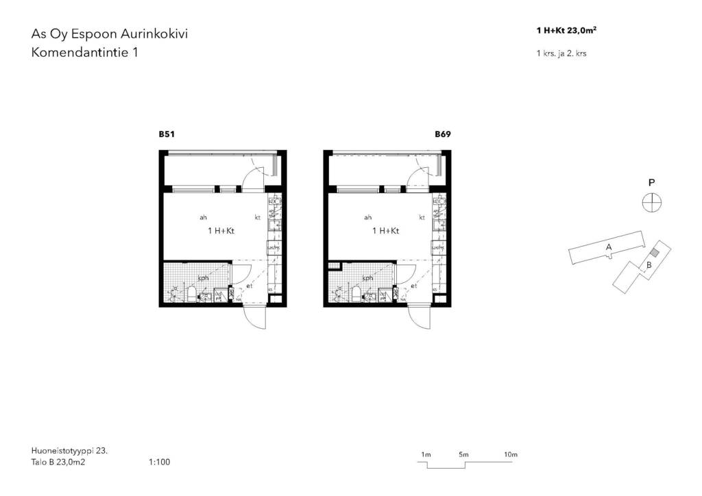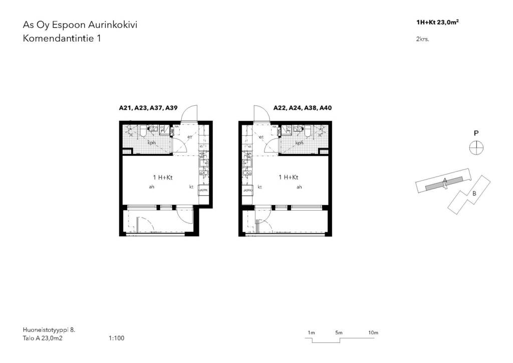 | 1 H + KT | 23 m² | 695 €/kk |