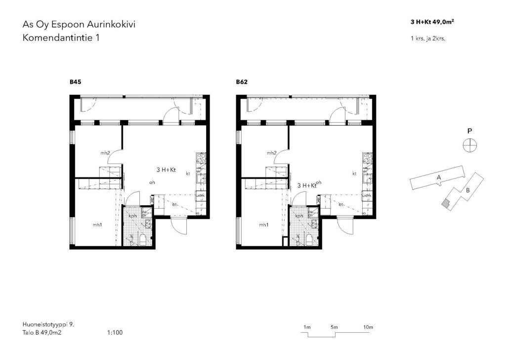 | 3 H + KT | 49 m² | 1070 €/kk | 1.6.2026 |