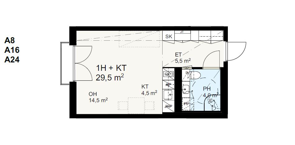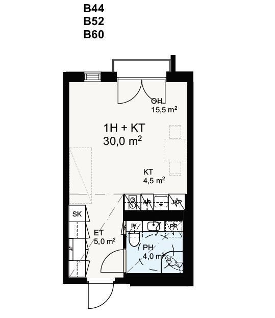 | 1 H + KT | 29.5 m² | 745 €/kk |
