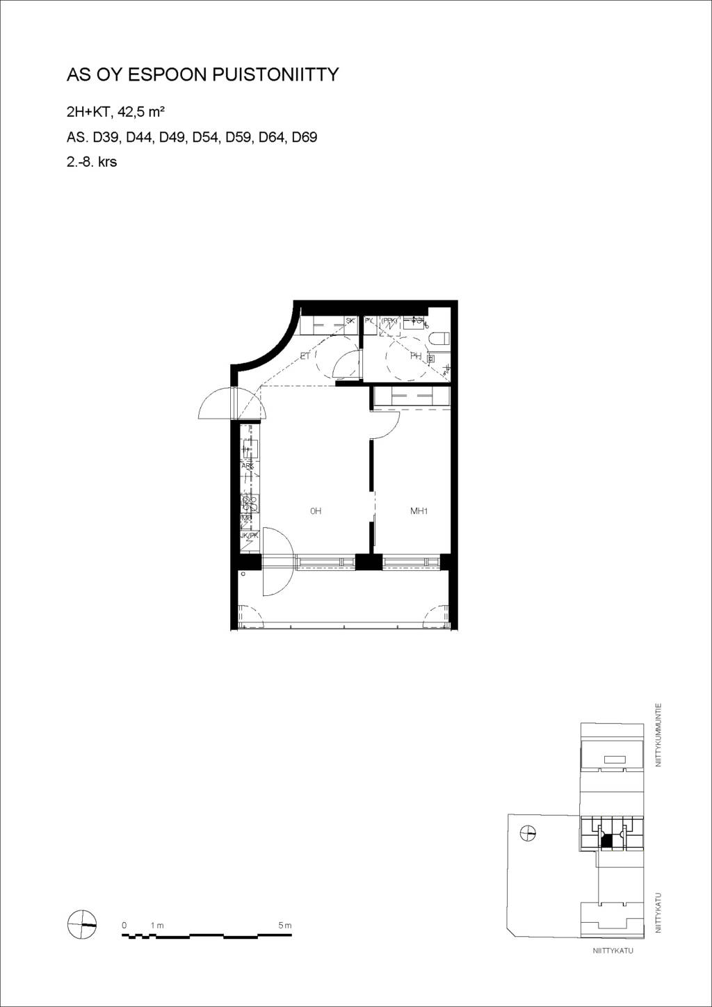 | 2 H + KT | 42.5 m² | 933 €/kk |