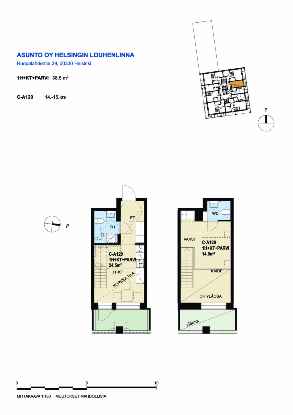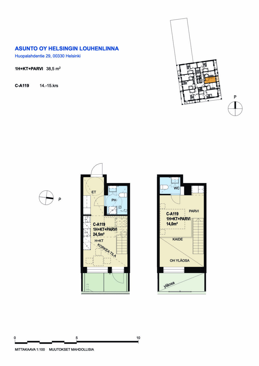 | 1 H + KT + PARVI | 38.5 m² | 1117 €/kk |