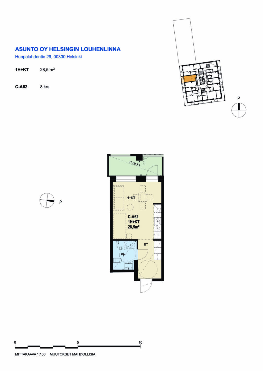| 1 H + KT | 28.5 m² | 815 €/kk |