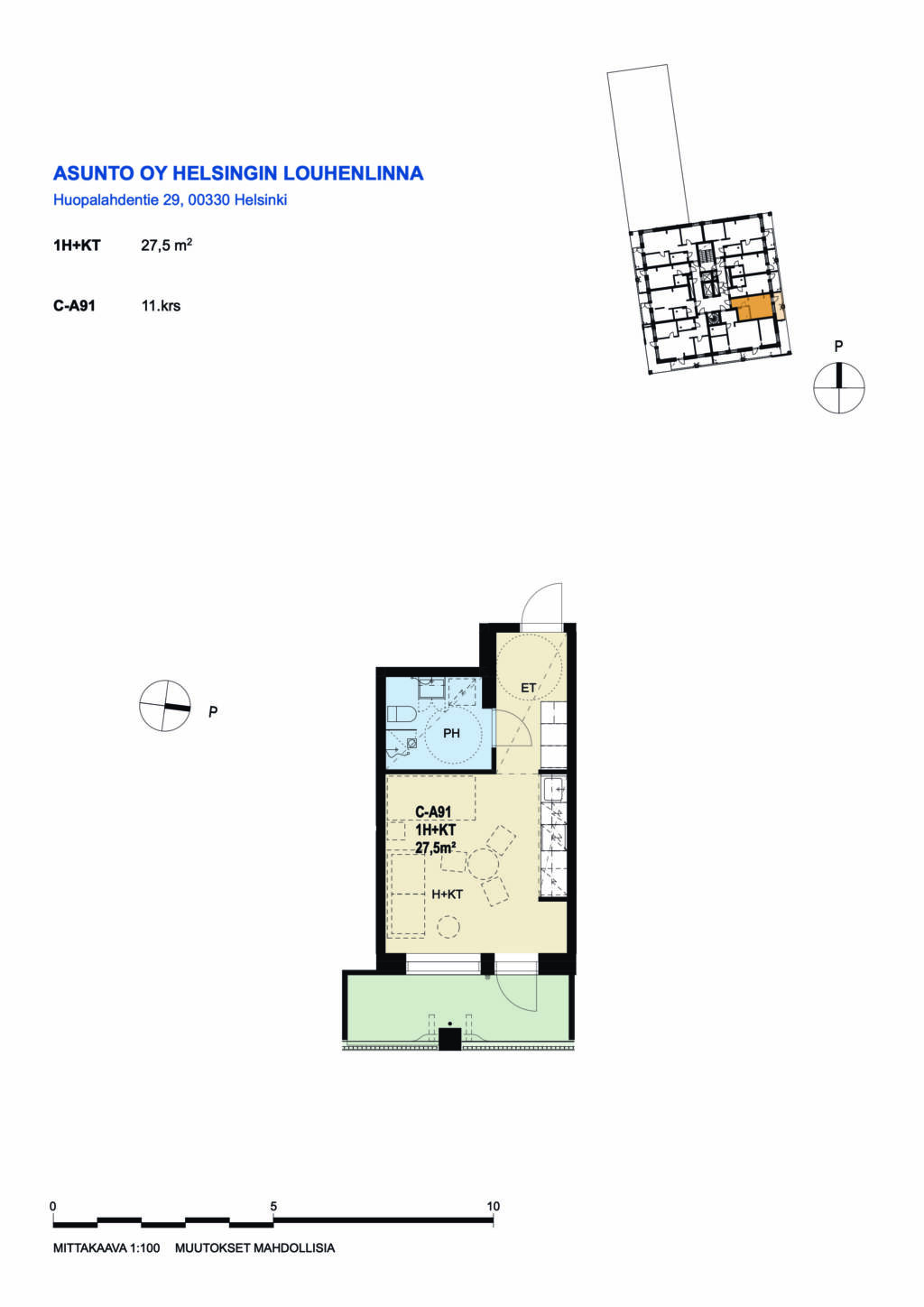 | 1 H + KT | 27.5 m² | 840 €/kk |
