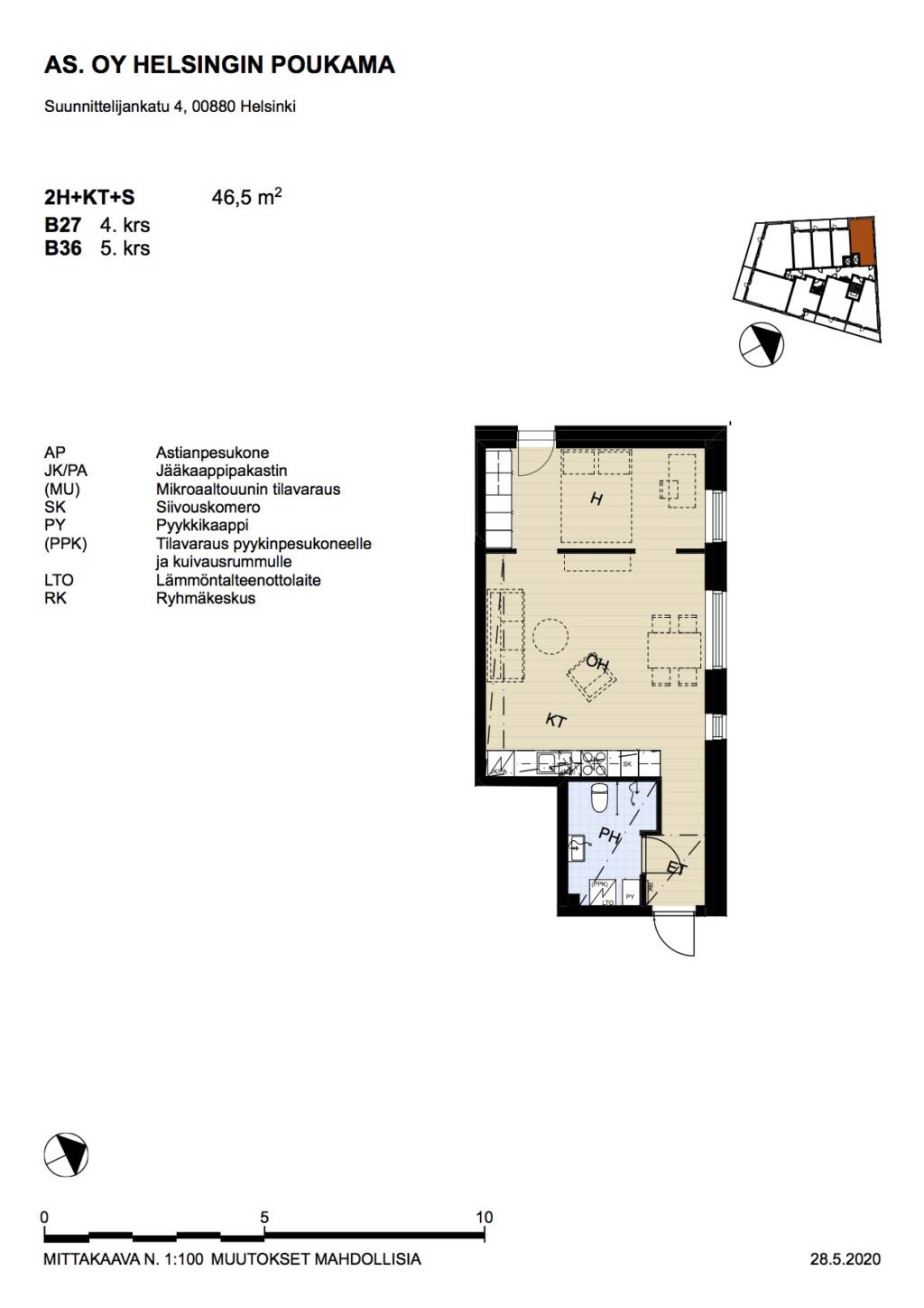 | 2 H + KT | 46.5 m² | 1060 €/kk |