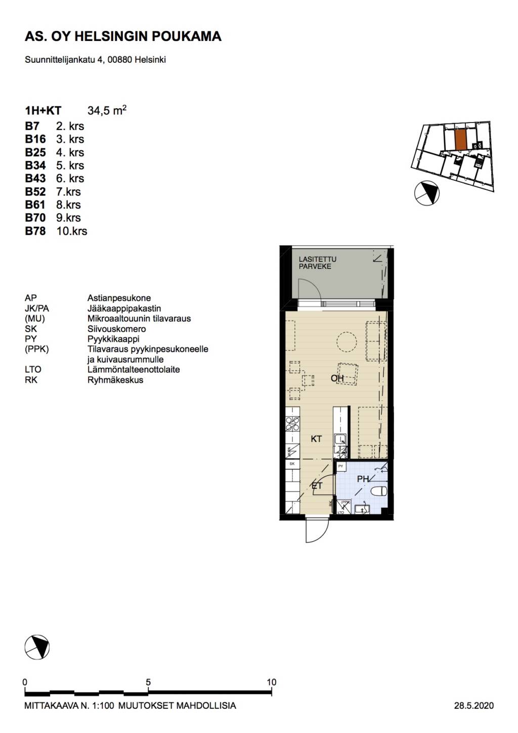 | 1 H + KT | 34.5 m² | 905 €/kk |