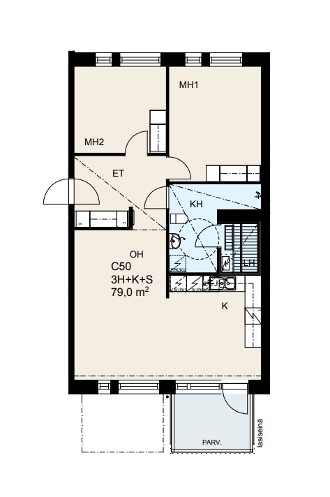 | 3 H + K + S | 79 m² | 1650 €/kk | 1.4.2026 |
