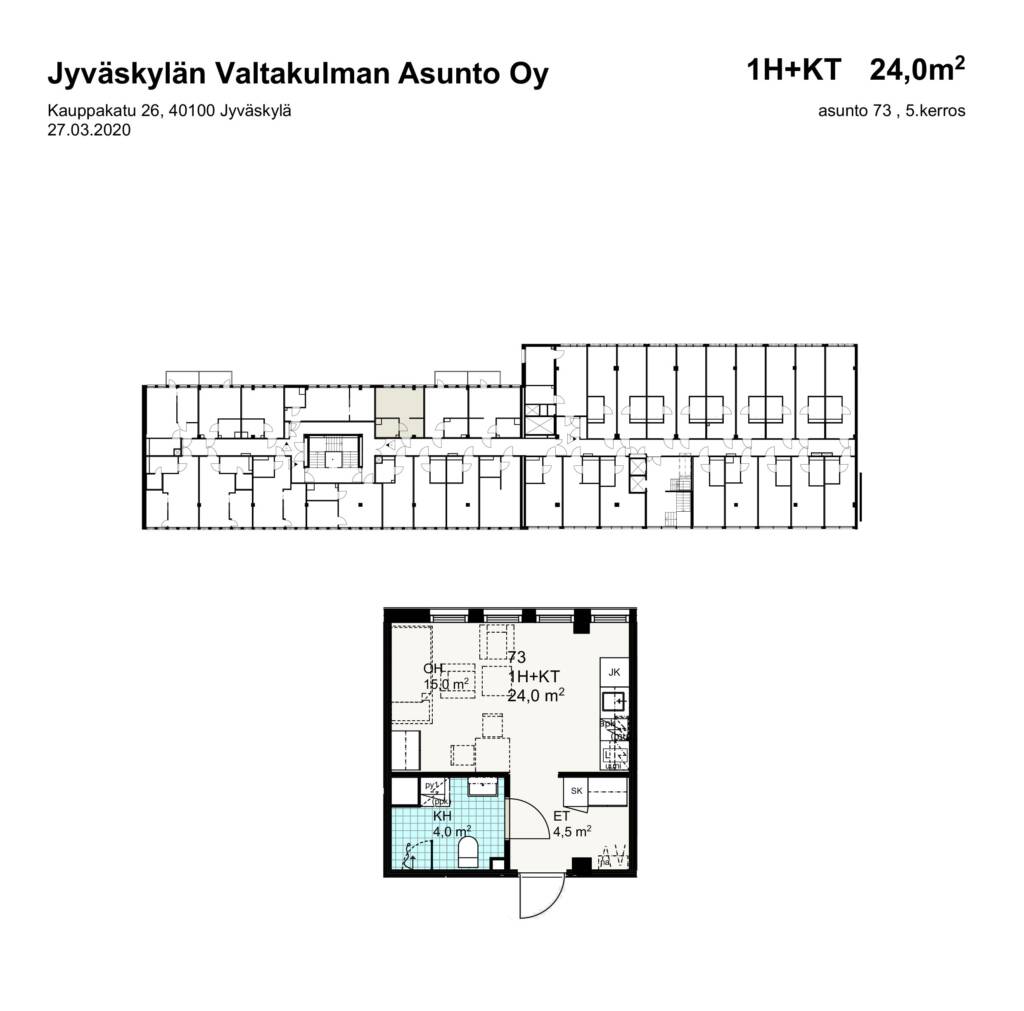 Vuonna 2020 valmistunut Asunto Oy Jyväskylän Kauppakatu 24-26 sijaitsee aivan Jyväskylän ydinkeskustassa kauppakeskus Sokkarin yläkerrassa.