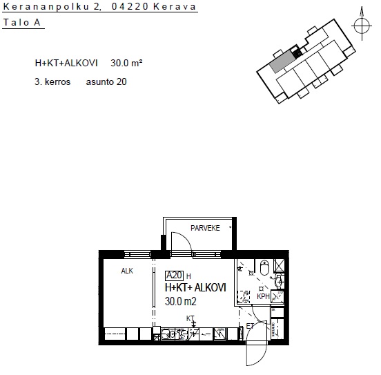 | 1 H + KT + ALKOVI | 30 m² | 695 €/kk |
