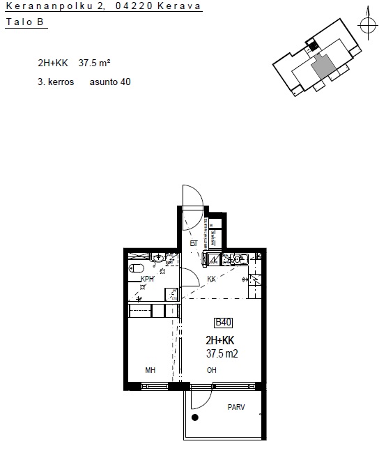 | 2 H + KK | 37.5 m² | 755 €/kk | 1.12.2025 |