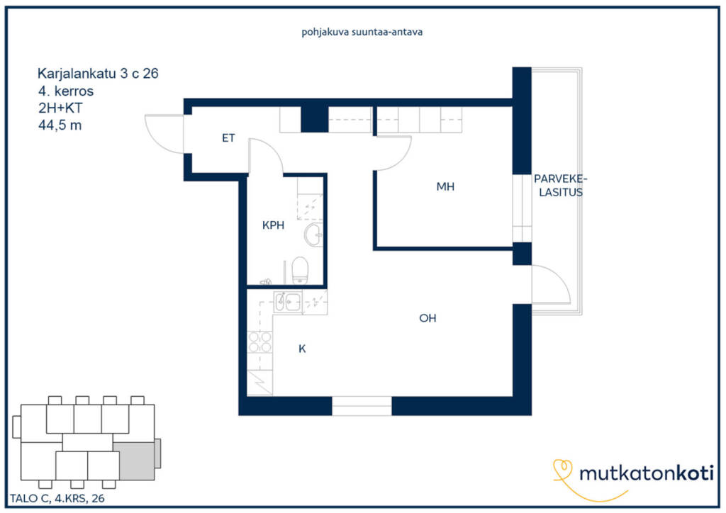 | 2 H + KT | 44.5 m² | 705 €/kk |