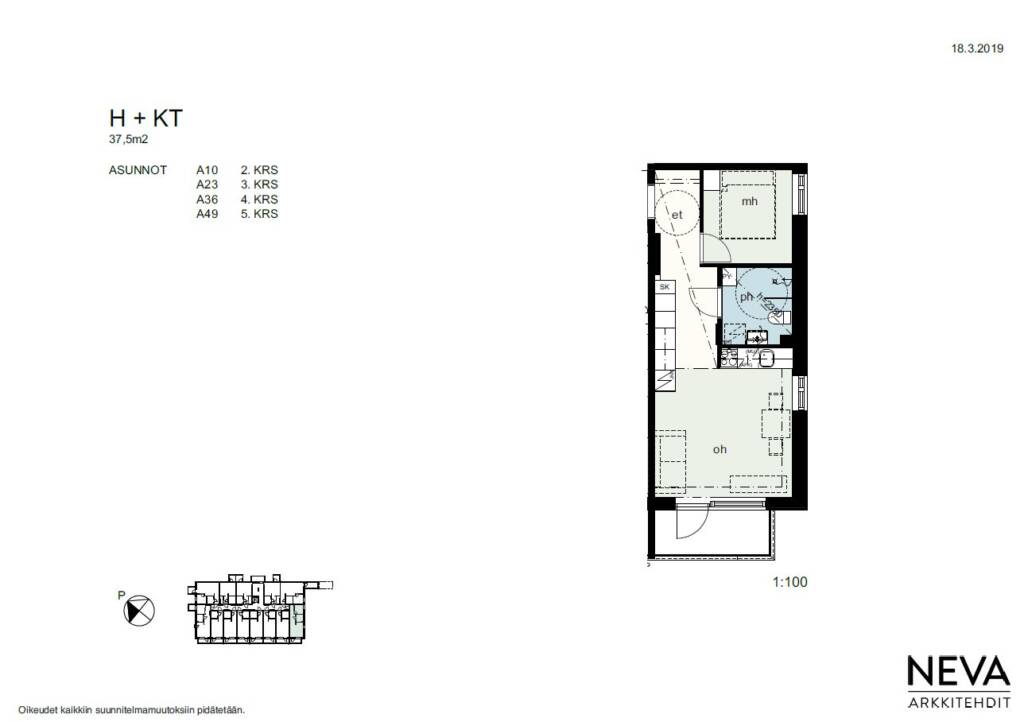 | 2 H + KT | 37.5 m² | 685 €/kk | 2.3.2026 |