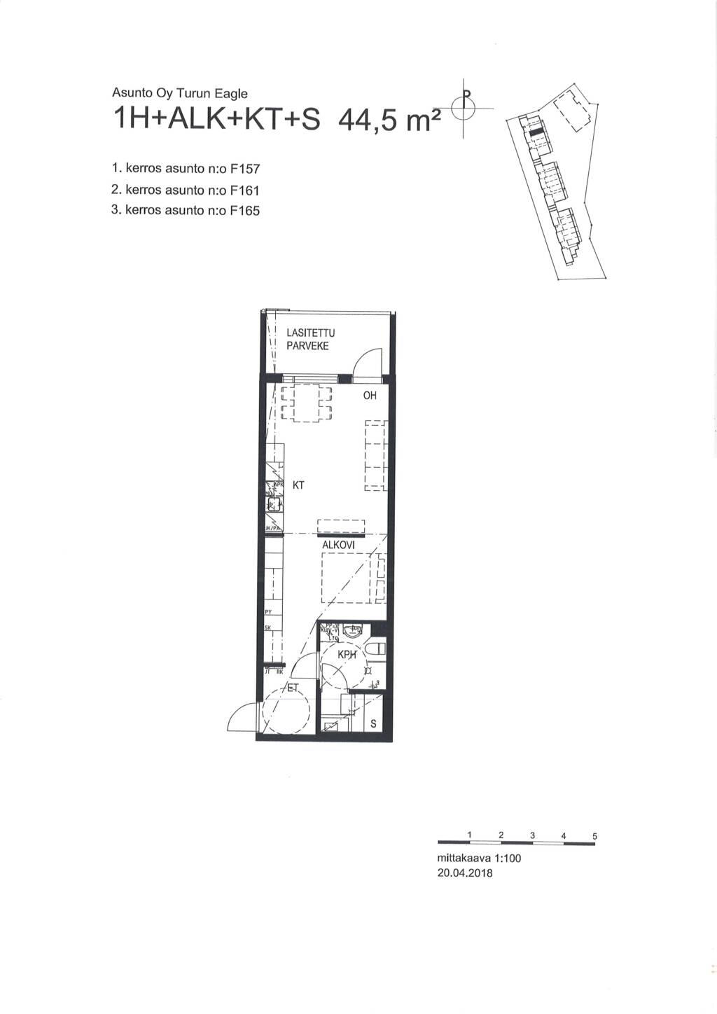 | 1 H + KT + ALKOVI + S | 44.5 m² | 785 €/kk |