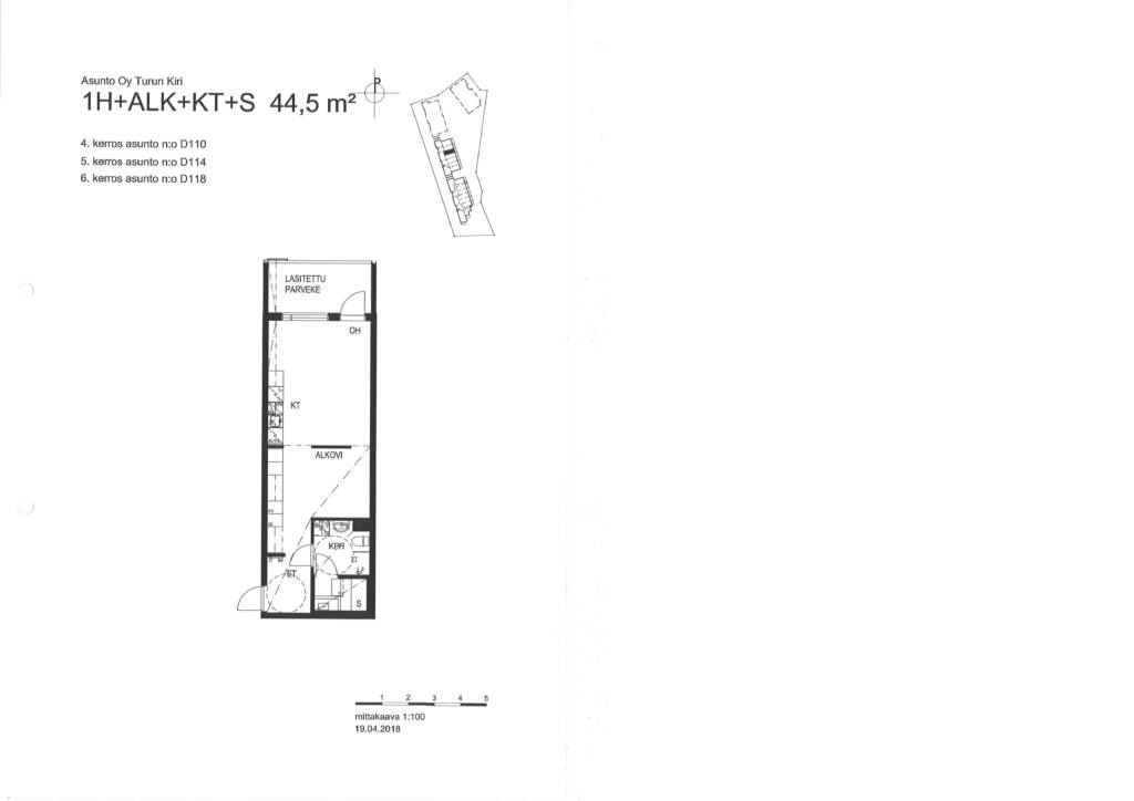 | 1 H + KT + ALKOVI + S | 44.5 m² | 830 €/kk |