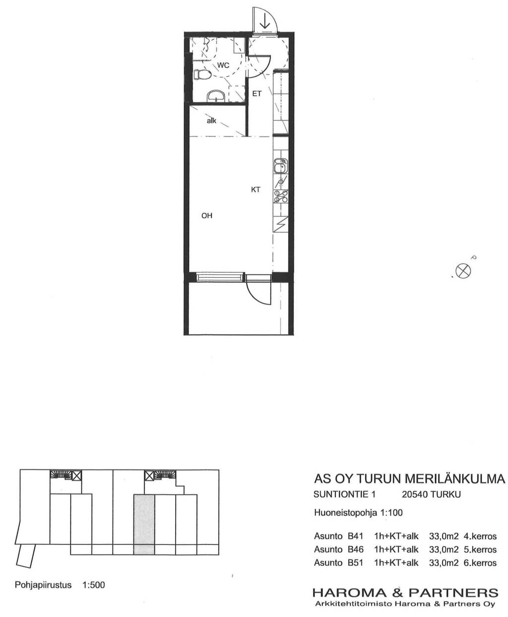 | 1 H + KT + ALKOVI | 33 m² | 715 €/kk |