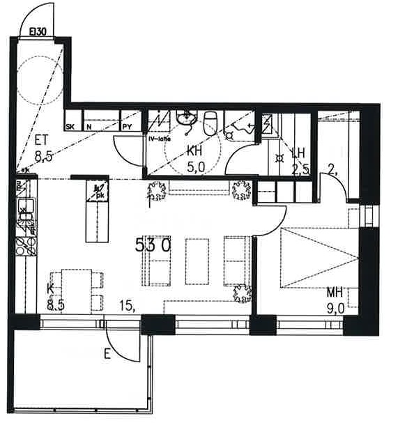 | 2 H + KT + S | 53 m² | 885 €/kk | 2.2.2026 |