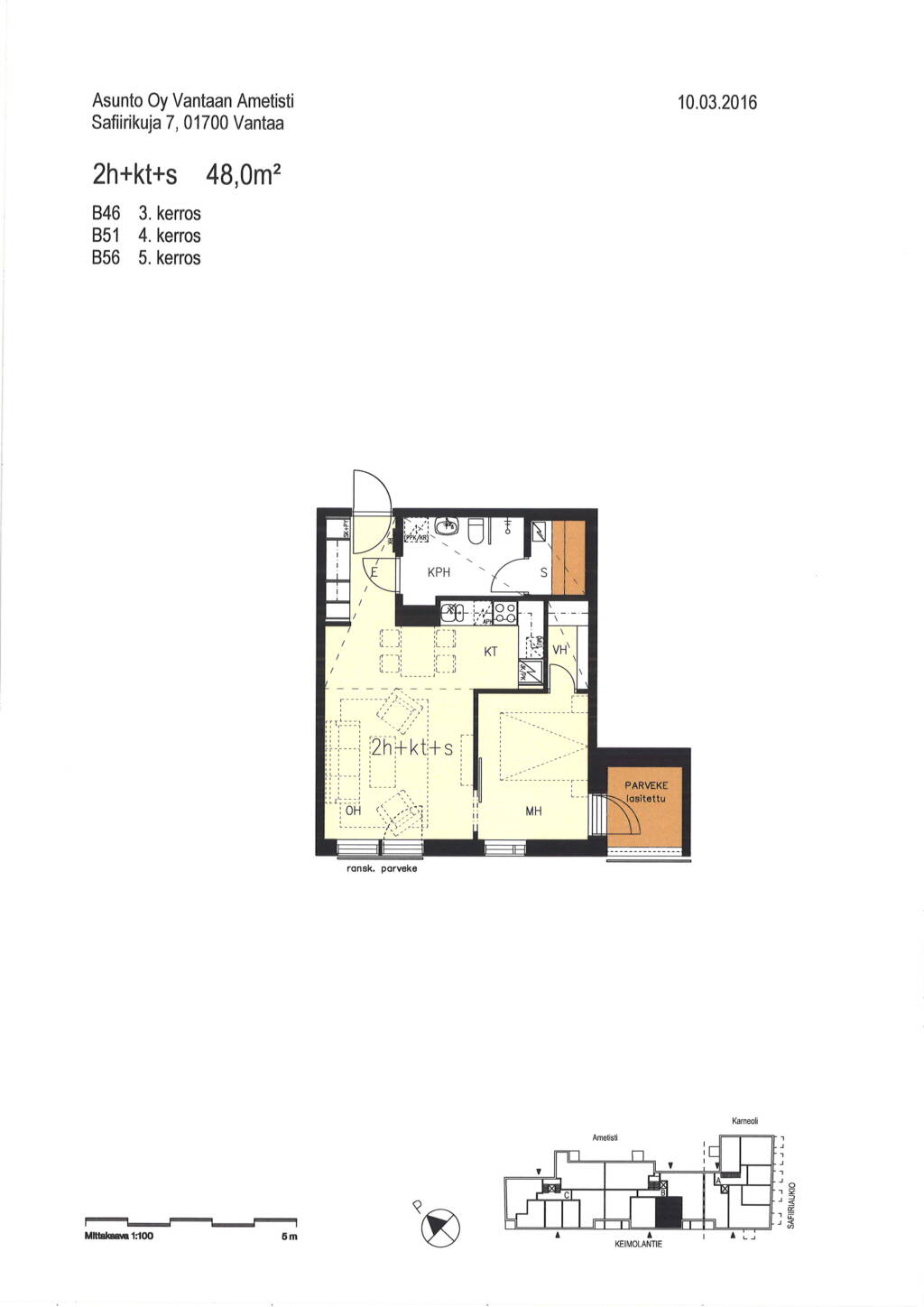 | 2 H + KT + S | 48 m² | 785 €/kk |