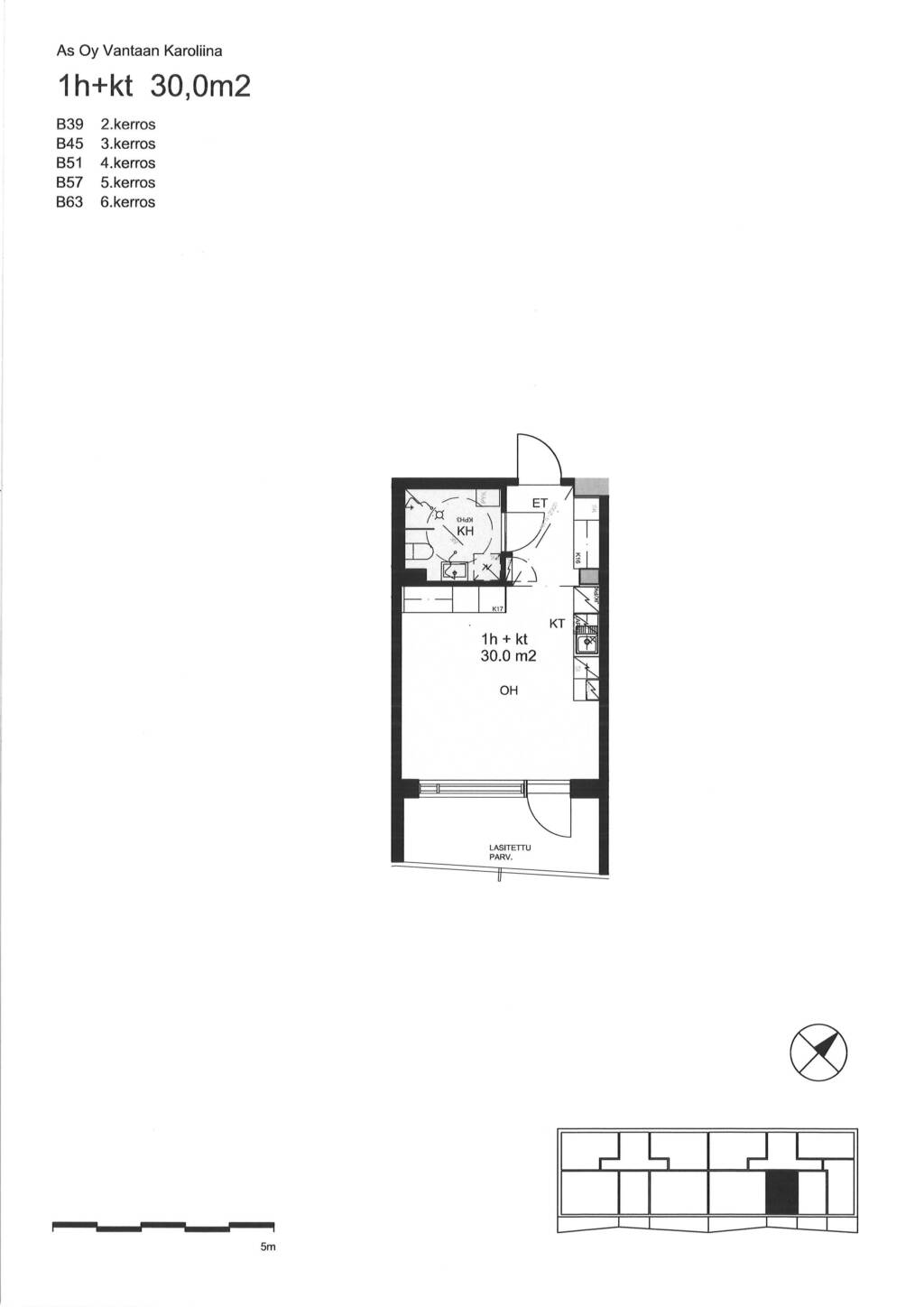 | 1 H + KT | 30 m² | 701 €/kk |