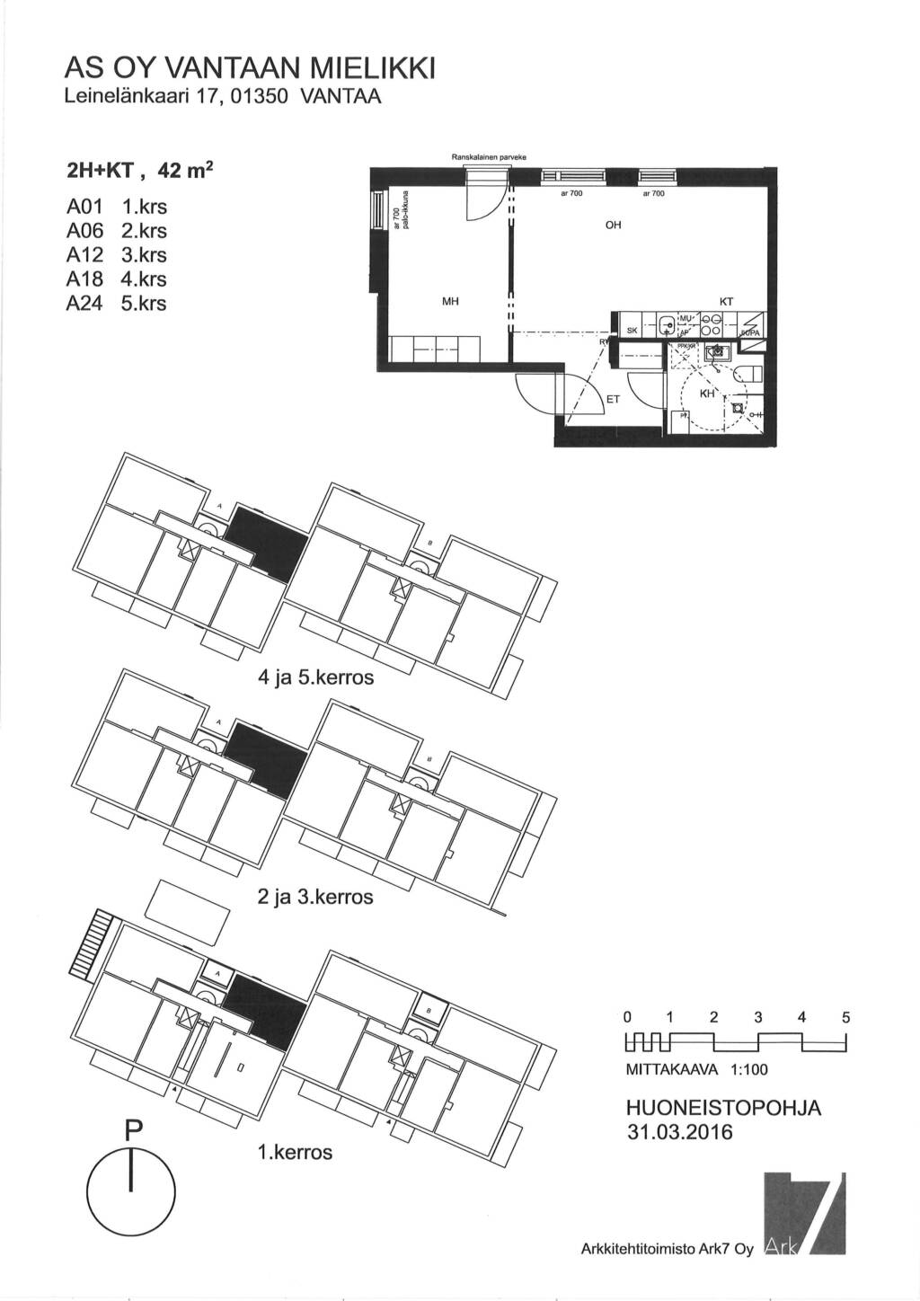 | 2 H + KT | 42 m² | 810 €/kk | 1.4.2026 |