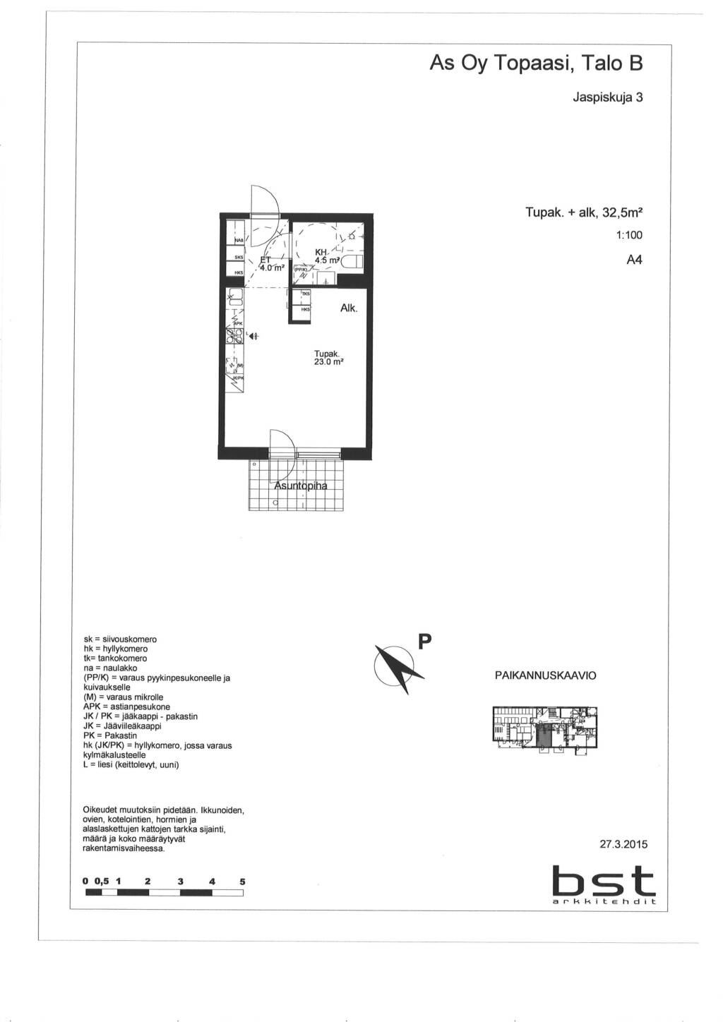| 1 H + TUPAK | 45.5 m² | 780 €/kk |